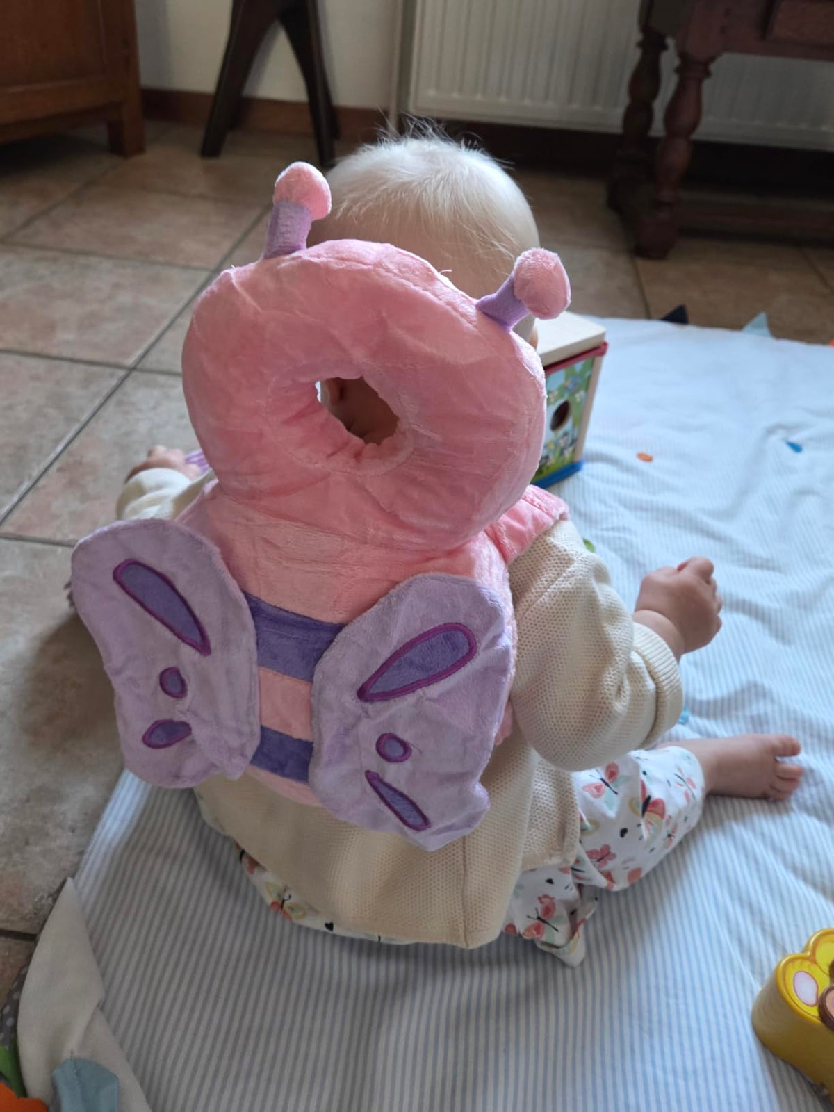 I got this lightweight cute head protector for my baby and its been a total lifesaver for my peace of mind while my she learns to sit and walk. It’s so soft and airy that she doesn't even notice she’s wearing it, and the adjustable straps do a great job of staying in place without being a bother.